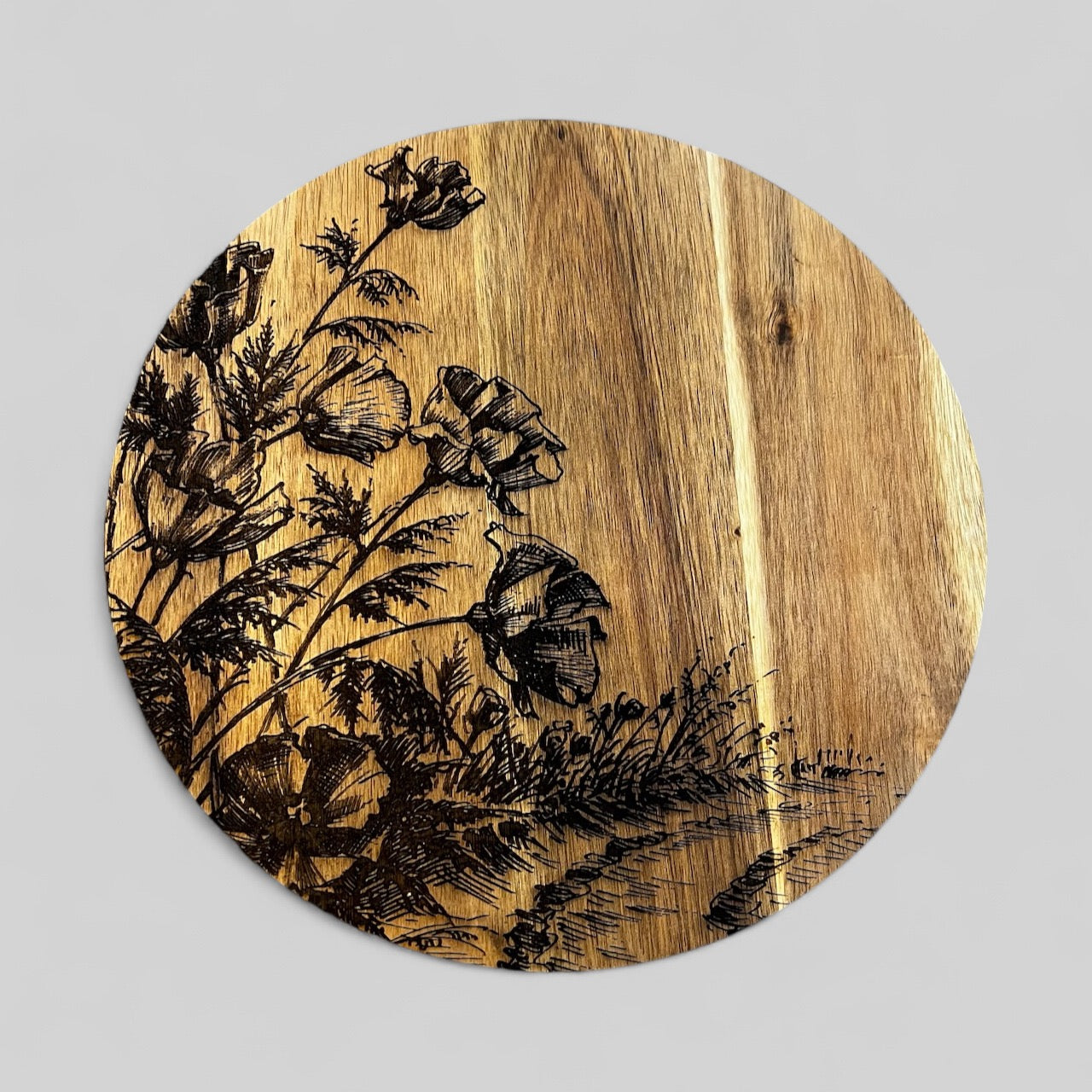 Featuring a unique, hand-drawn image intricately laser-engraved into the surface, each Lazy Susan is a one-of-a-kind statement piece that adds warmth and character to any table setting. At 1.5" tall, it provides ample height to elevate your dishes while ensuring stability on your dining surface.